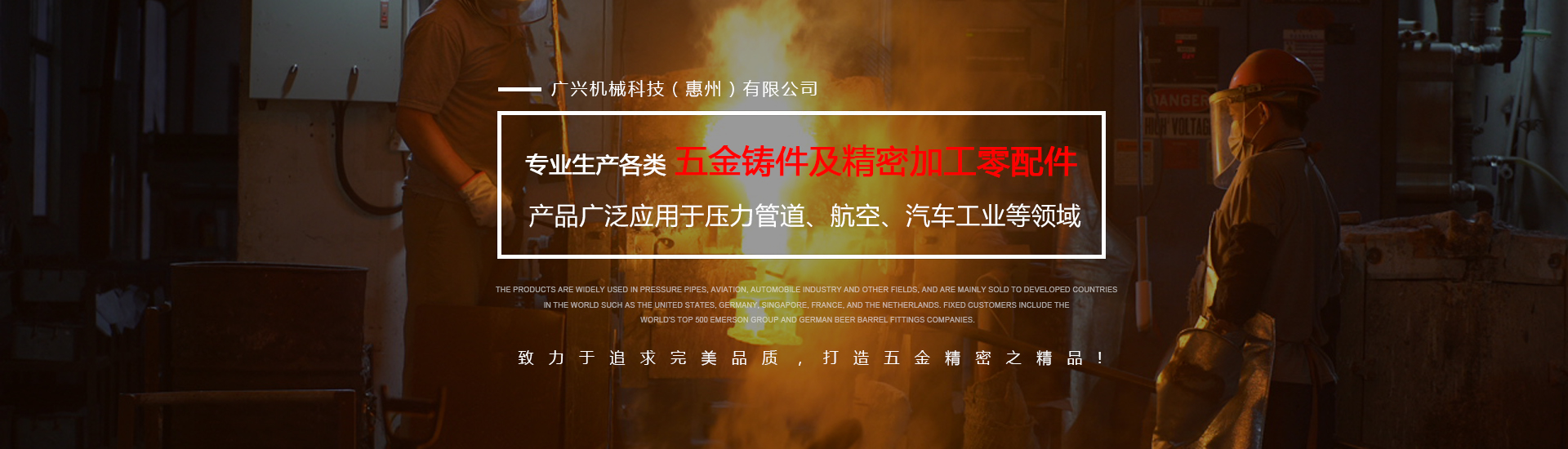 公司專業生產各類五金鑄件及精密加工零配件,可熔煉材質為全系列不銹鋼及碳鋼,主要生產材質有304、316、316L17-4430409等,年生產各種不銹鋼鑄件1000余噸。產品廣泛應用于壓力管道、航空、汽車工業等領域,主要銷往美國、德國、新加坡、法國、荷蘭等世界發達國家,固定客戶有世界500強艾默生集團及德國啤酒桶配件公司。